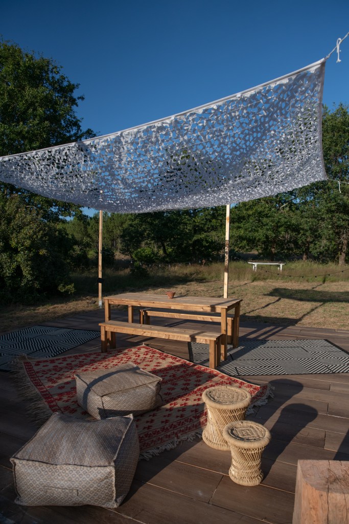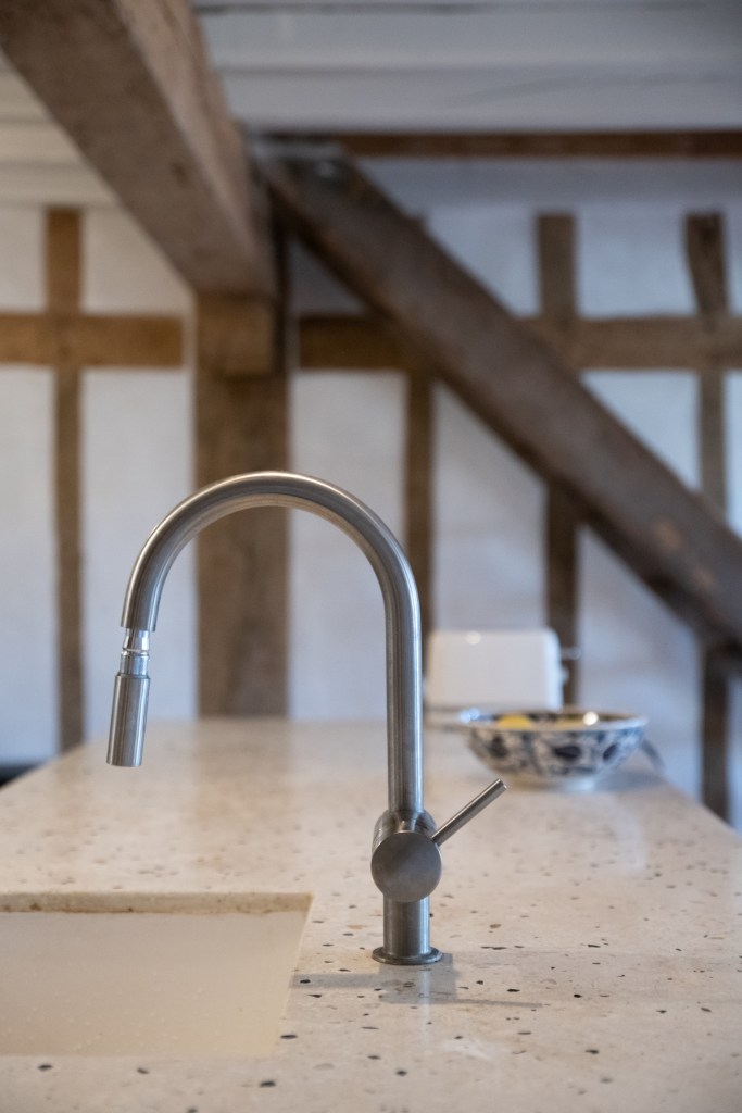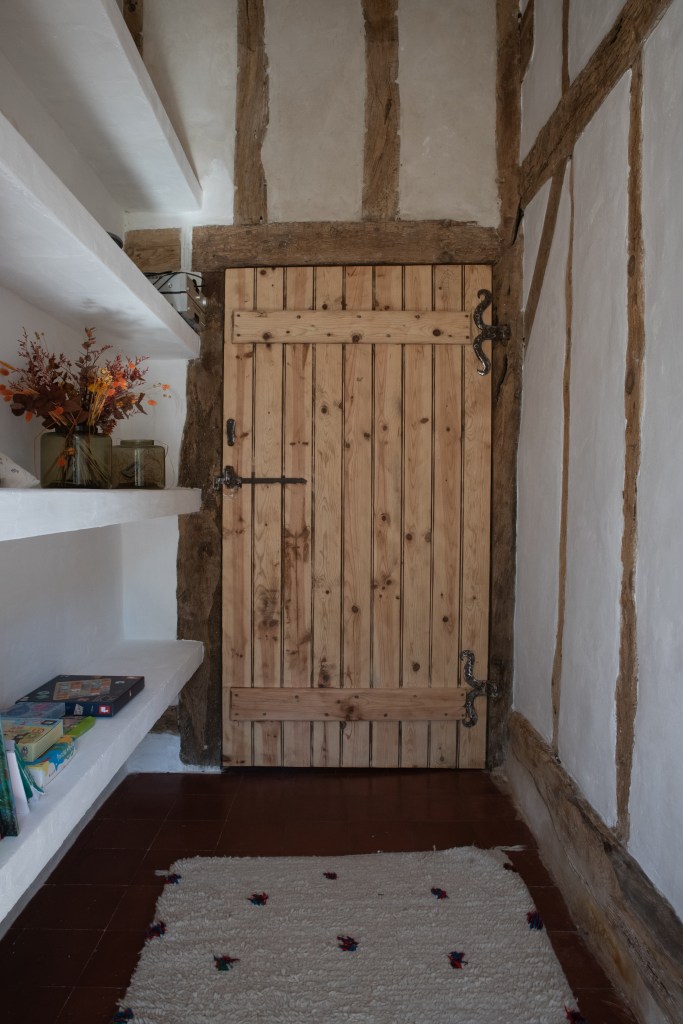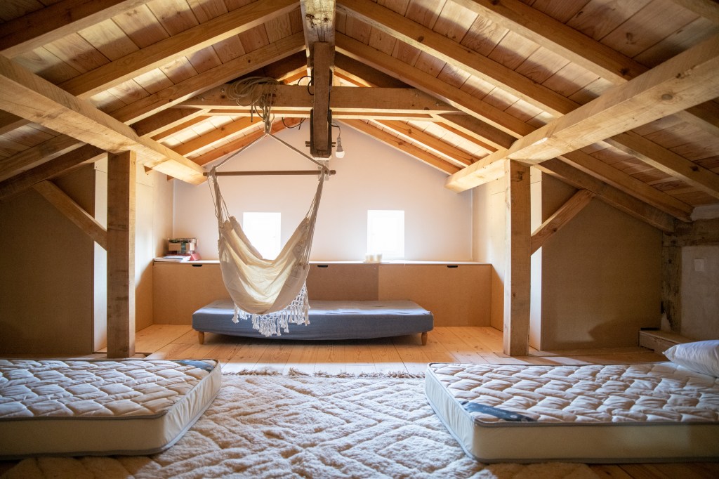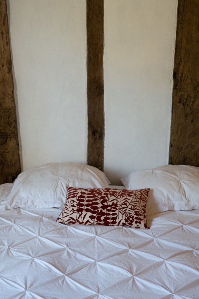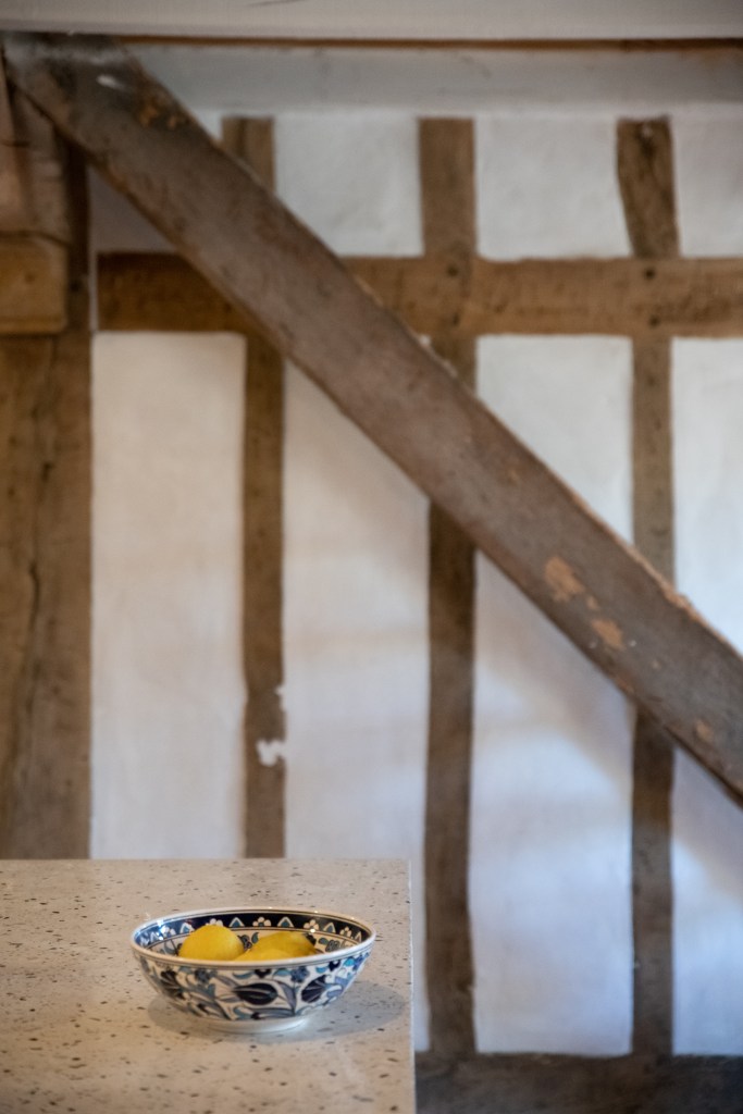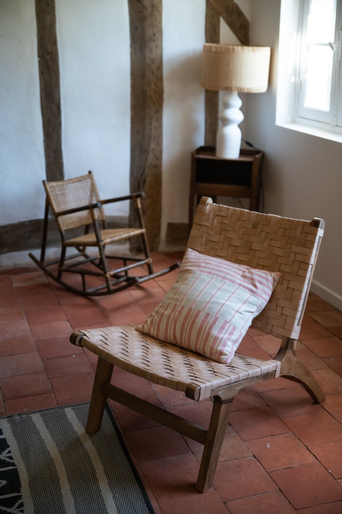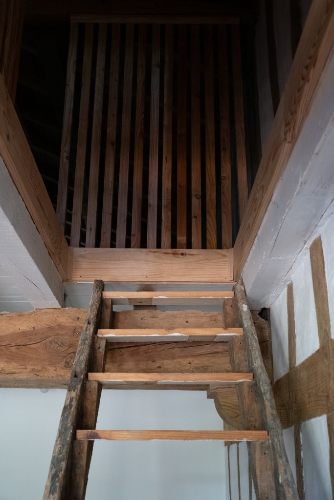 Tussen de grote houten balken die overal in het huis terug te vinden zijn, wordt torchis geplaatst om op die manier een muur te vormen. Torchis is een soort beton dat van oudsher veel gebruikt wordt voor het fundament van de traditionele huizen in deze streek. Beter bekend als ‘La maison Landaise’.